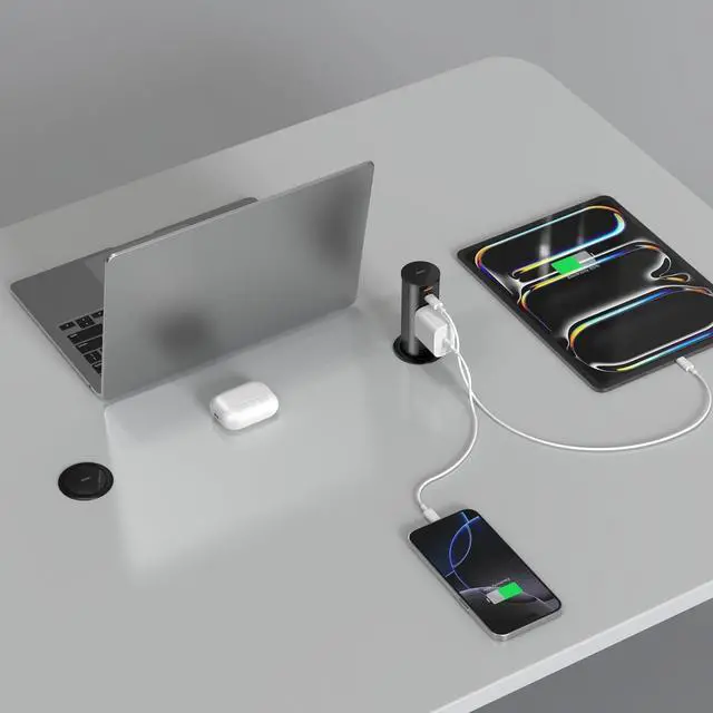 Sleek & Space-Saving Power Hub: Retractable hidden design, No more messy cords just tap to rise, press to hide. Perfect for modern homes craving minimalist style.