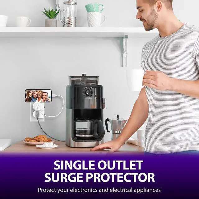 [Protect Electrical Devices Against Power Surges] Fosmons single outlet surge protector will protect your valuable electronics and electrical devices against power surges caused by lightning, power outages, and overloading. The small surge protector provides 245-joule protection, which is capable of withstanding multiple power surges.