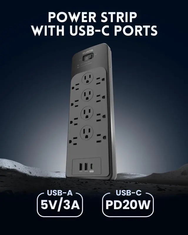 15-in-1 Power Hub Equipped with 12 AC outlets, 1 USB-C port, and 2 USB-A ports, this power strip provides all the connectivity you need to charge and power your appliances and mobile devices with ease.