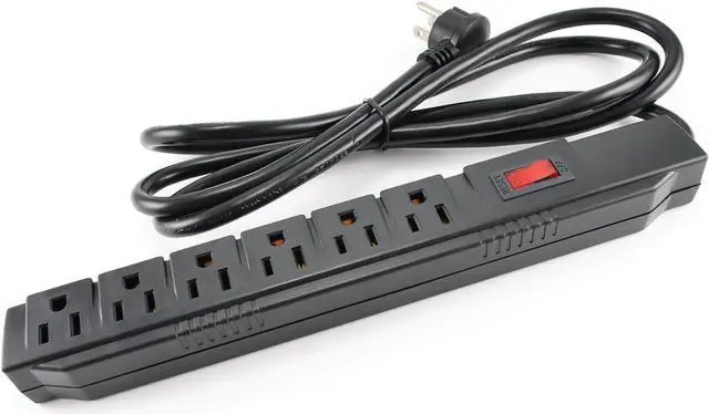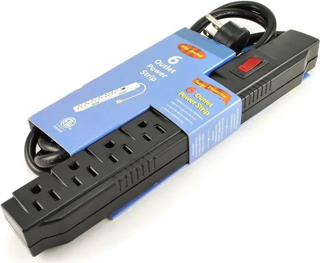 CablesOnline 6 Outlet Surge Strip, Horizontal, 250 Joules, (6 ft.) Cable, with Right Angle Plug
