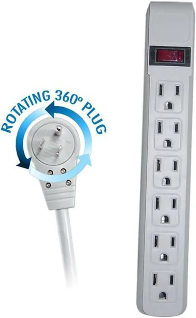 6 3-prong Outlets to 3-prong Power Plug The built-in circuit breaker prevents overloading of the power strip Comes with 6 horizontal outlets and flat 360 degree rotating plug
