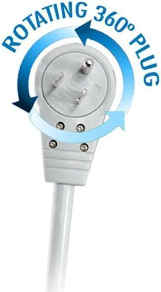 Comes with 6 horizontal outlets and flat 360 degree rotating plug