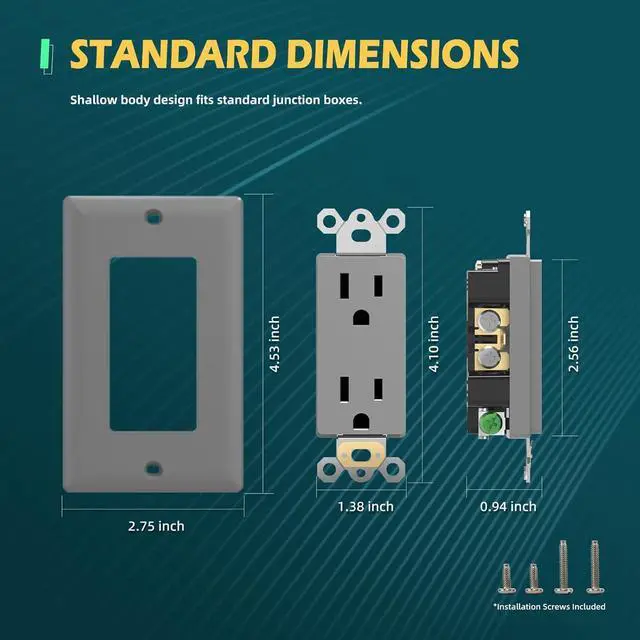 Easy Installation - Shallow body design allows for compact wiring. Decora electrical socket compatible with both side wiring (12-14 AWG) and back wiring (14 AWG) for flexible setup