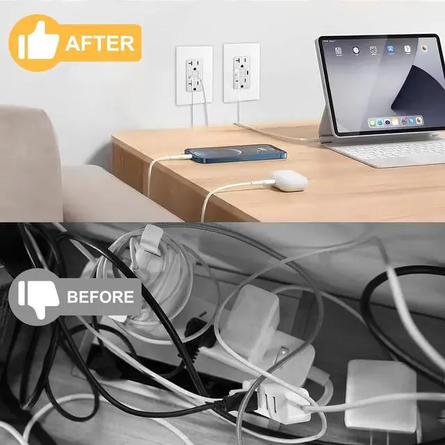 Space Saving: The outlet combines traditional AC outlets with integrated USB ports, providing a versatile charging solution for all your devices. Our outlets save space, making them an ideal choice for rooms with limited wall space.