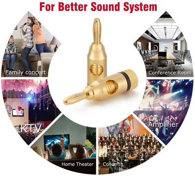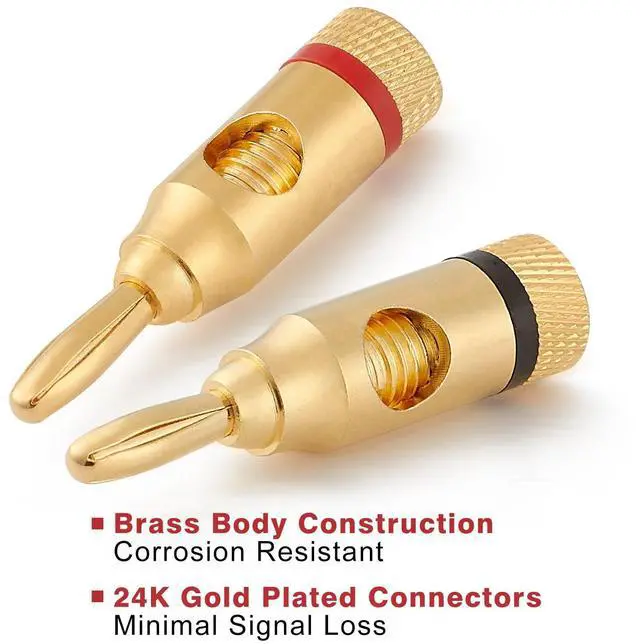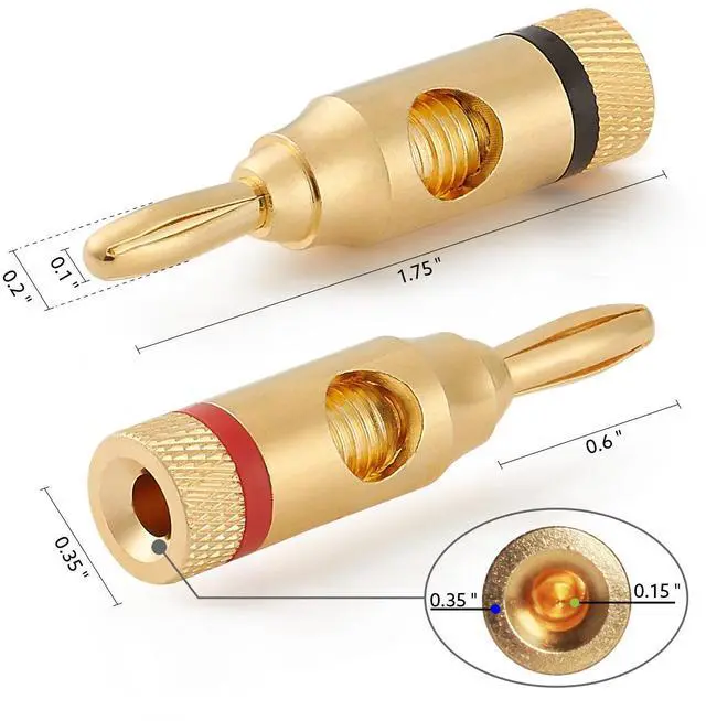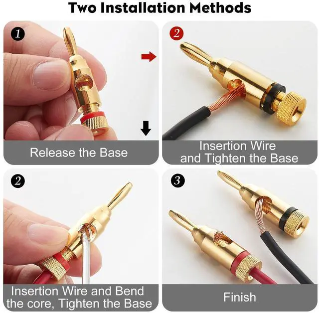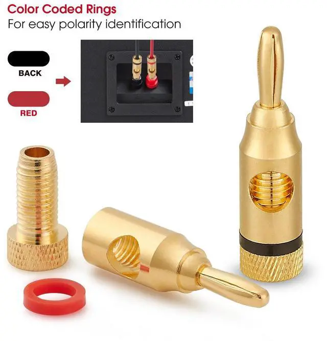 • Color coded black/red rings for maintaining proper polarity/ First way installation 14 & 16 gauge speaker wire has to fold the wire over, then tighten the banana plug,it will not affect the sound quality.