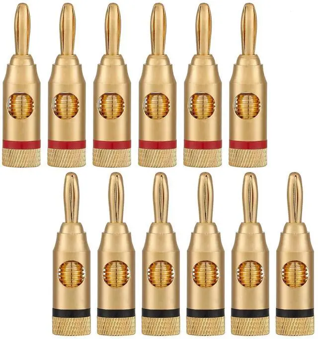 KEHIPI WG-3334 24k Gold Plated Banana Plugs or Connectors (Open Screw Type) (6 Pairs (12 Plugs))