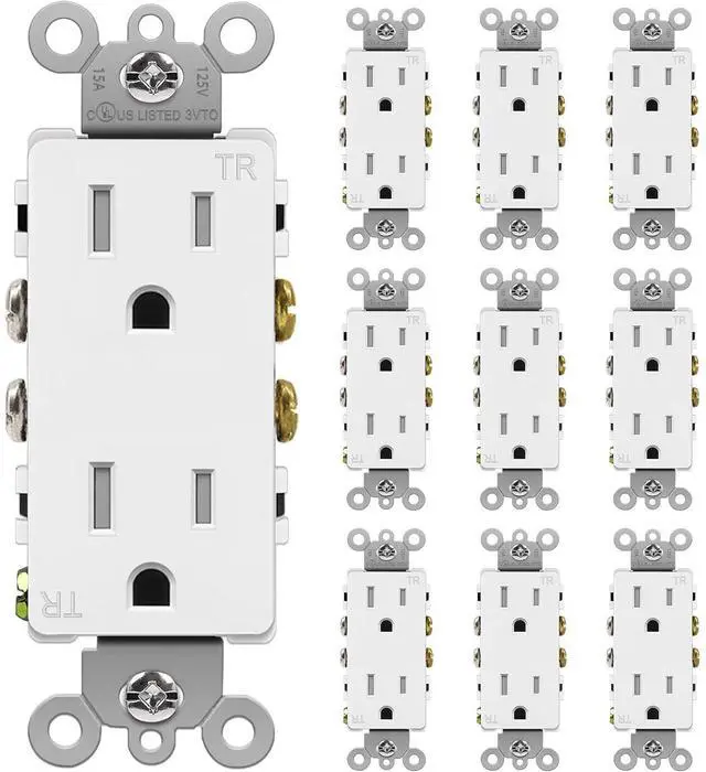 Standard Electrical Outlet: 15 amp decor wall receptacle, 15A/125V/1875W, gloss white color. UL/cUL Listed. For the best match use with BESTTEN USWP4 Series wall plates (sold seperately)