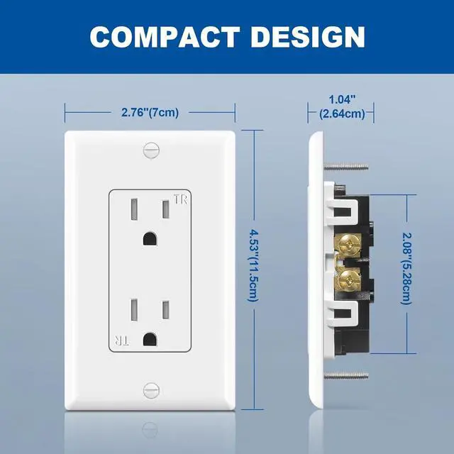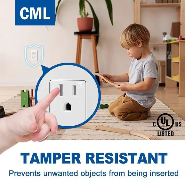 Tamper Resistant: Outlet with build-in shutters prevent insertion of foreign objects and protects your children from electrical injuries, adding safety