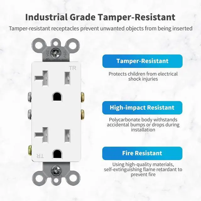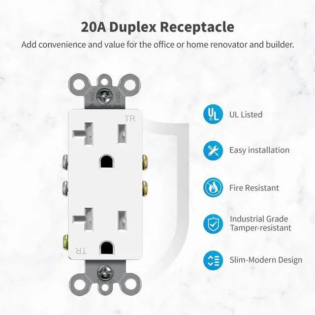 • UL & CUL LISTED Designed and tested in accordance with UL498 requirements. UNIVERSAL APPLICATION These outlets are suitable for installation in various locations from home offices, business buildings, public areas, and more where only require a 20 Amp outlet.