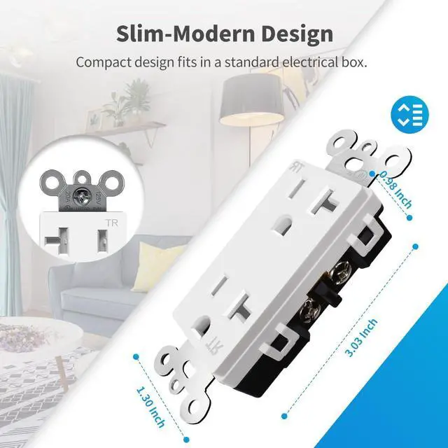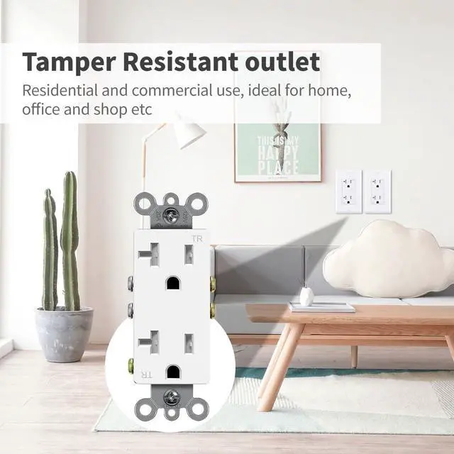 • Tamper Resistant Decorator outlets feature a sophisticated tamper-resistant design with an internal shutter mechanism that blocks access to the contacts unless a proper plug is inserted.
