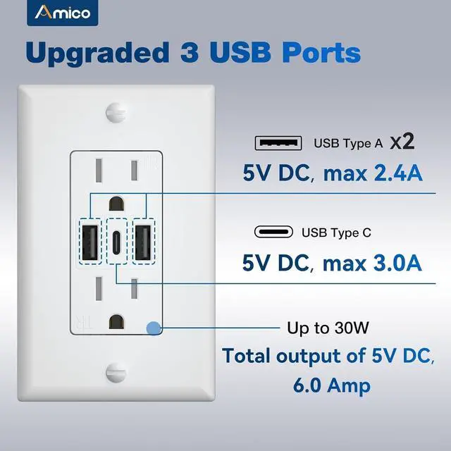 ETL Certified: Amico' s USB outlets meet rigorous ETL high standards, suitable for residential, commercial, and office use