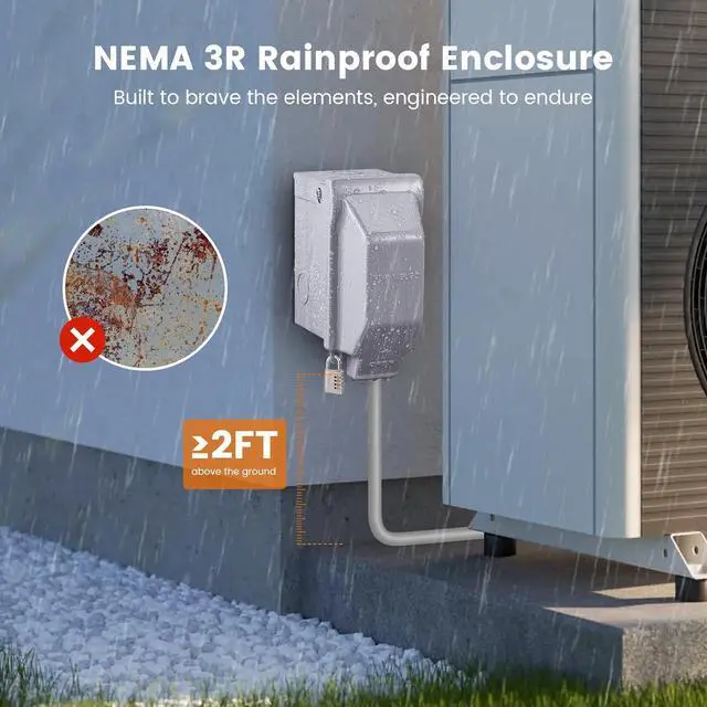 Weatherproof & Rust-resistant: 3R-rated all-metal enclosure crafted from high-grade galvanized steel; designed to withstand rain, dust, and rust; ensures durability in challenging outdoor environments; suitable as an outdoor electrical outlet box waterproof solution