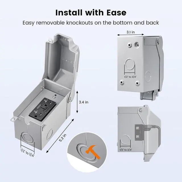 Comprehensive Outdoor Power Solution: Includes a rugged steel box, 20 AMP GFCI receptacle, gasket, and metal cover; provides an economical and robust power solution; perfect for outdoor electrical box waterproof applications and ensuring safety and convenience