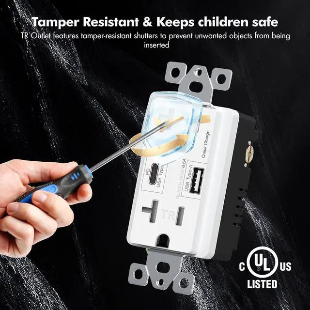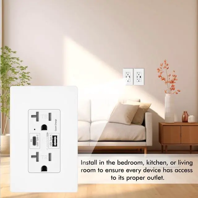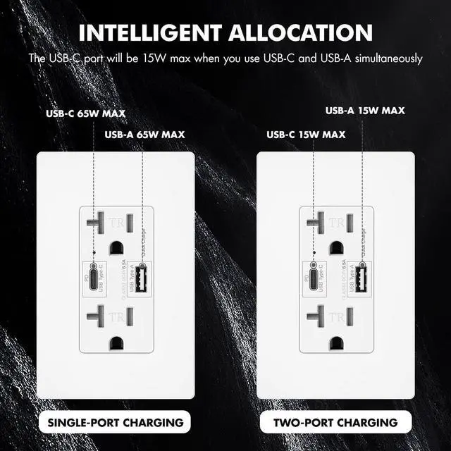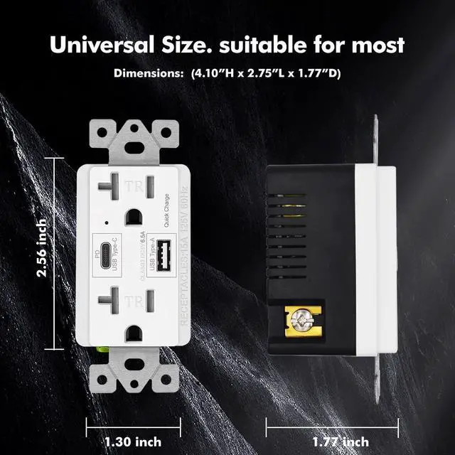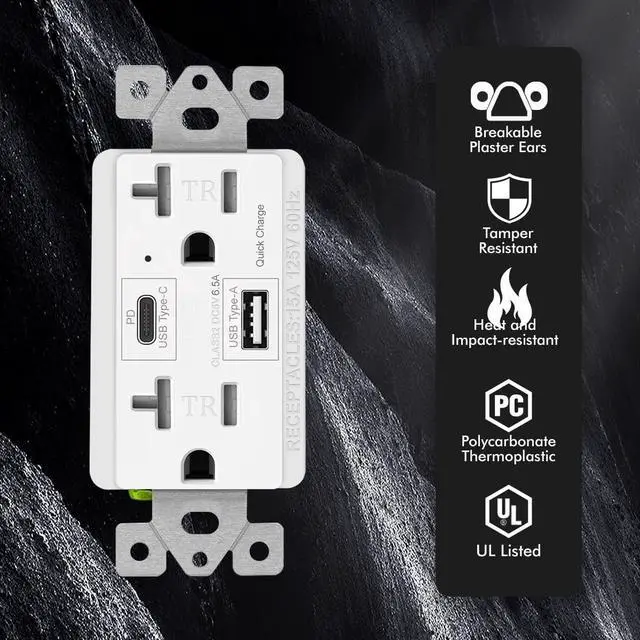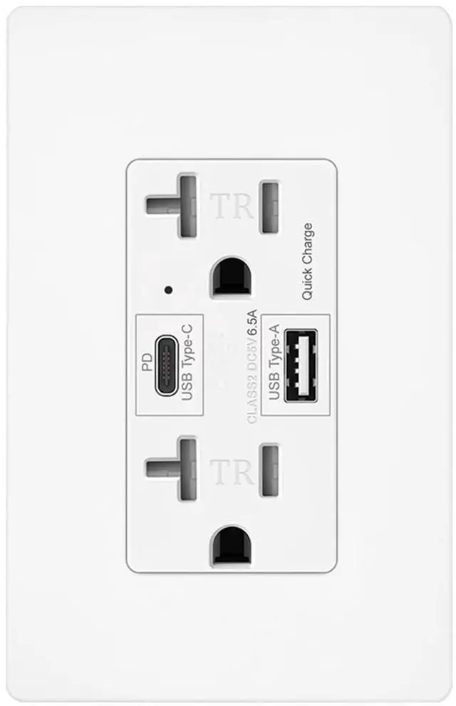 Dual charging: This outlet also includes a standard USB port, so you can charge Type C and type A two devices at the same time without adapters.