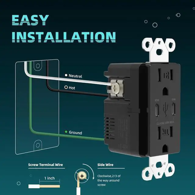 Easy to Install Fits standard wall boxes and supports side or back wiring. Perfect for DIYreplace your existing outlet quickly and easily. Includes screwless wall plate and installation instructions. Ideal for homes, offices, and commercial spaces