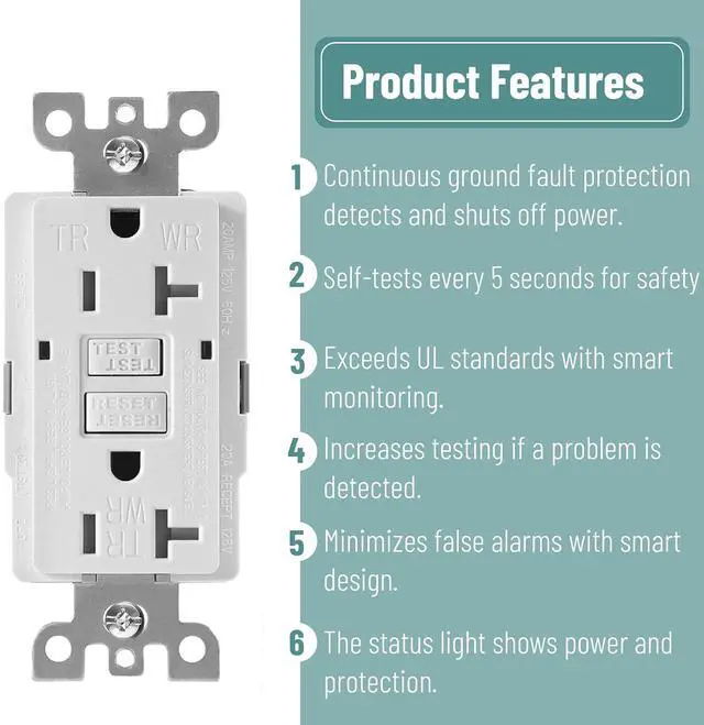 UL Listed for safety, these outlets offer self-testing capabilities, ensuring continuous monitoring for protection against electrical faults.