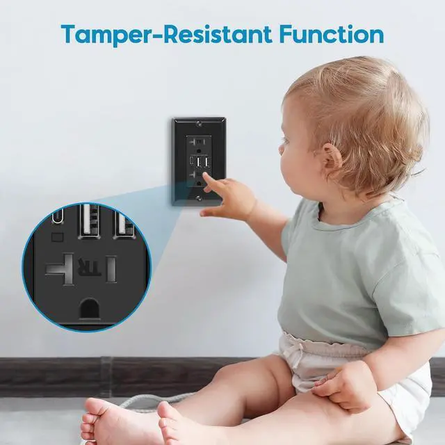 DURABLE & SECURITY 20Amp outlets built-in cooling ensures efficient power and reduced heat for a longer lifespan. Tamper-resistant design blocks foreign objects, and flame-retardant materials meet UL94 standards for added safety and durability
