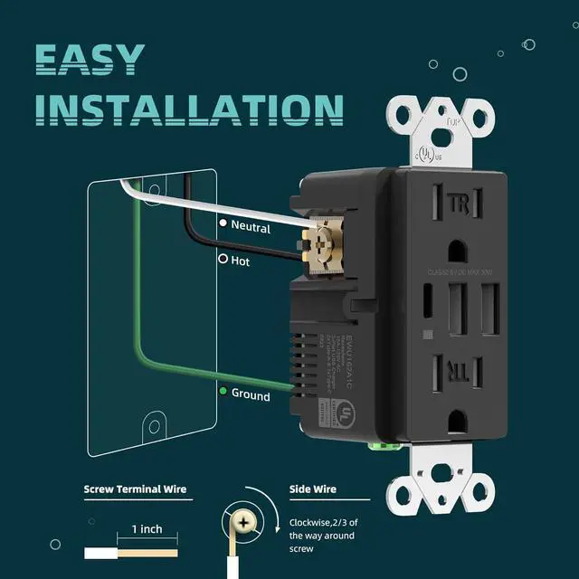 Fits standard wall boxes and supports side or back wiring. Easy to Installreplace your existing outlet quickly and easily. Includes sleek screwless wall plate and clear installation instructions. Ideal for homes, offices, and commercial spaces