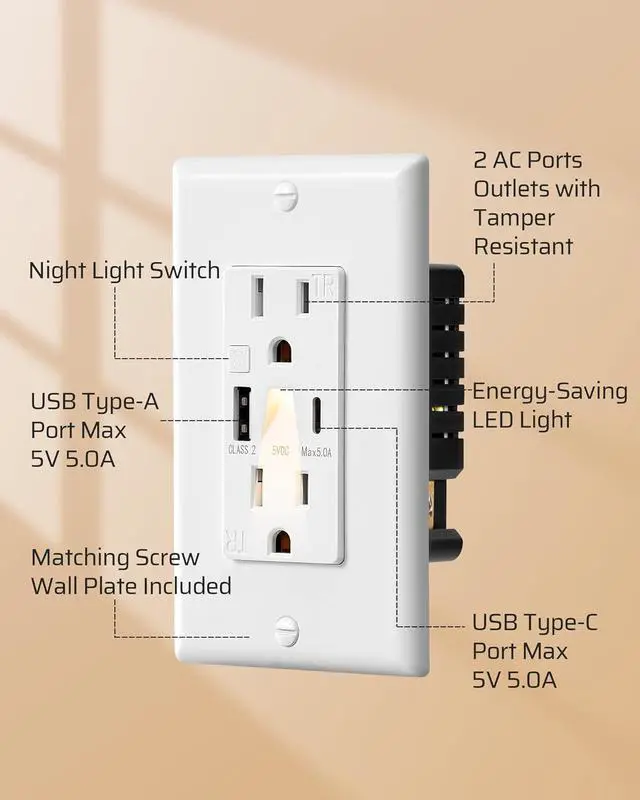 [Child Safety Protection] The USB outlet features a shutter mechanism that prevents contact with the prongs unless the plug is fully inserted, offering enhanced safety for children and effectively reducing the risk of electric shocks