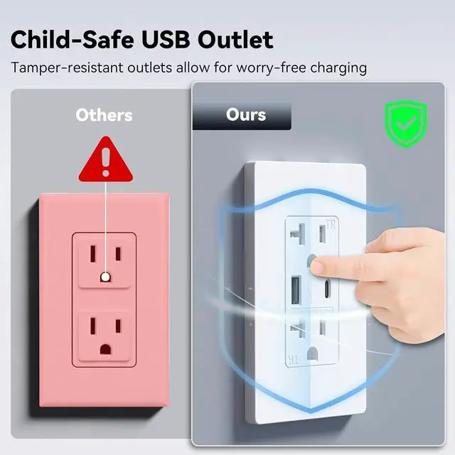 Safety - Tamper-Resistant: Prevent children from inserting foreign objects into the outlet, enhancing safety during use. It is highly suitable for use in kitchens, living rooms, bedrooms, bathrooms, and other areas.