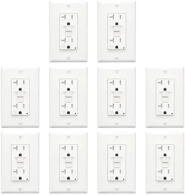 ThunderWay 20 Amp GFCI Outlet, Tamper-Resistant Receptacle, Self-Test Electrical Outlet with LED Indicator, Indoor/Outdoor Use, Decorator Wall Plates and Screws Included, ETL Listed, White, 10 Pack
