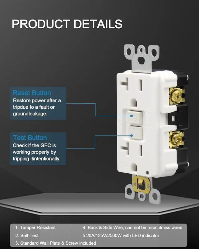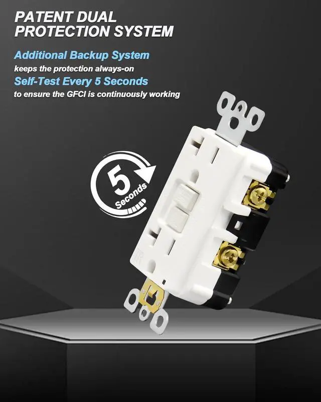 ULTIMATE SAFETY ASSURANCE: Get ready to embrace worry-free living! Our ETL Listed GFCI outlet with tamper-resistant design is your family' s electrical guardian. Self-testing LED indicator guarantees a shock-free haven. Secure your sanctuary now