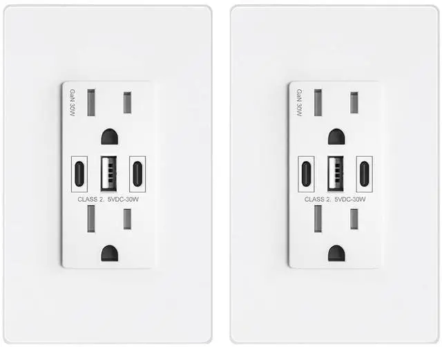 & Power: Up to 30W max(single port up to 15W, 5V/3A), this wall outlet charger with 2 USB-C port and 1 USB-A can provide fast charge for three devices simultaneously. (Not for laptop)