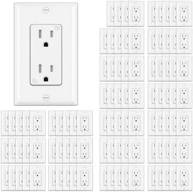 Cost-Effective: 15 amp decor tamper resistant receptacle outlets. 100 pack of decorator wall receptacles, provide convenience for new construction or home renovation, perfect choice for contractors, builders and electricians