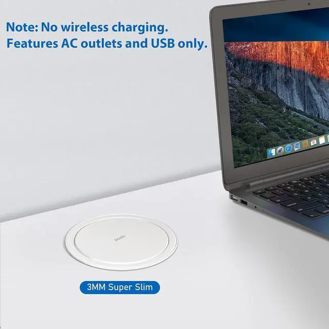USB-powered devices. (Note: No wireless charging. Features standard AC outlets and USB ports only. )