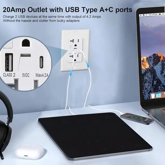Universal USB-A & USB-C Ports No Adapters NeededUSB Outlet have Dual USB ports support iPhone, Android, tablets, laptops, and moreeliminate bulky chargers.