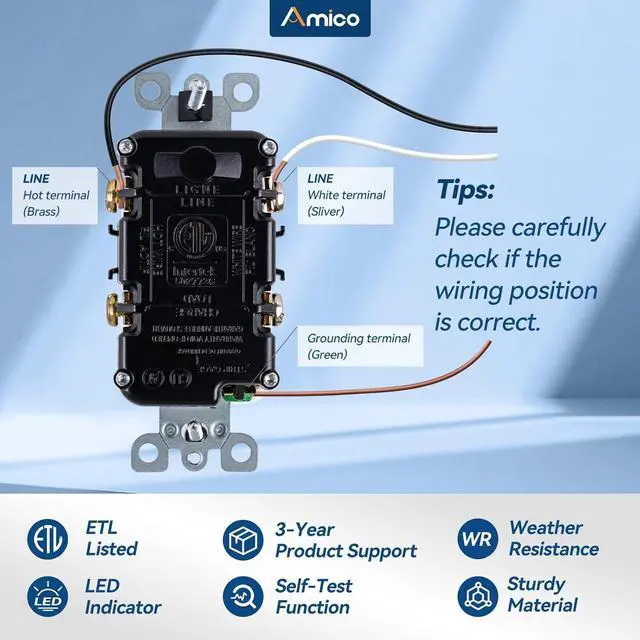 ETL Certified: Amico' s GFCI outlets meet rigorous ETL high standards, suitable for residential, commercial, and office use