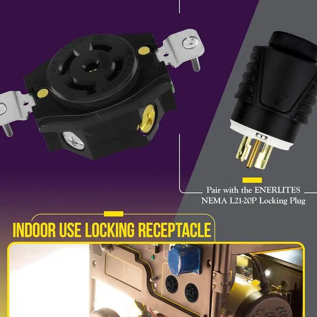 ENERLITES 66602 industrial-grade locking receptacle provides an ultra-durable and reliable build. The receptacle is constructed from thermoplastic for heavy-duty performance and resistance to harsh environments.