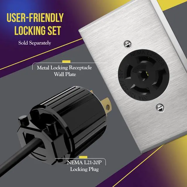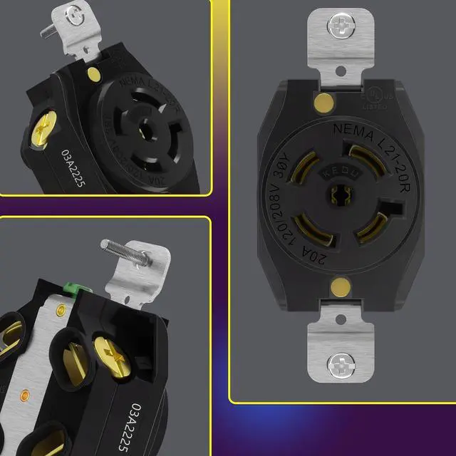 Black color; 20Amp, 125/208Volt; NEMA L21-20R; 4 Pole, 5 Wire; 4AWG Conductors, 12-10AWG; UL Listed; 2-year Warranty