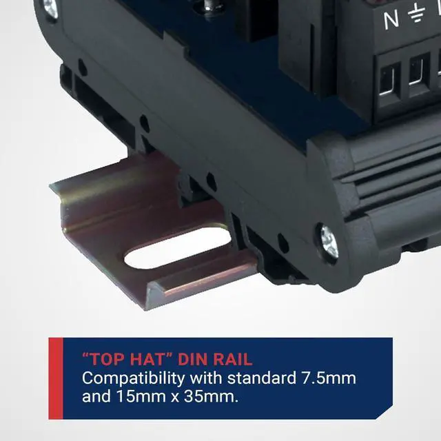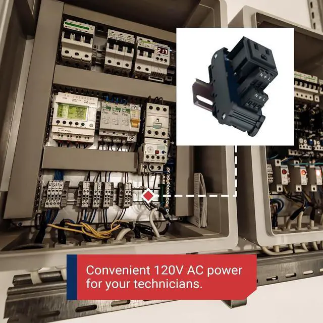COMPACT EASY ACCESS DESIGN: Effortlessly integrate this outlet into control panels with standard 35 millimeter DIN rail mount for a space-saving solution that seamlessly adapts to a range of setups