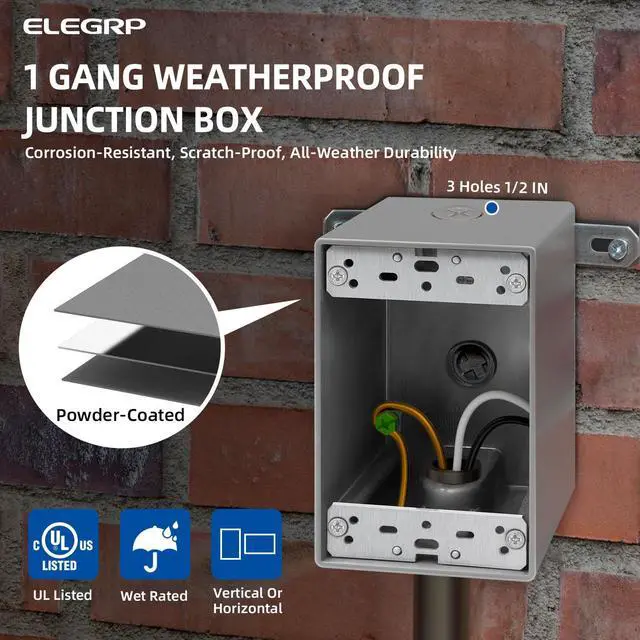 ·Durable Outdoor Junction BoxThis one-gang metal junction box features three 1/2-inch holes for easy wiring, die-cast construction, and a powder-coated finish for maximum corrosion resistance. Includes mounting lugs, closure plugs, and installation screws for hassle-free setup.