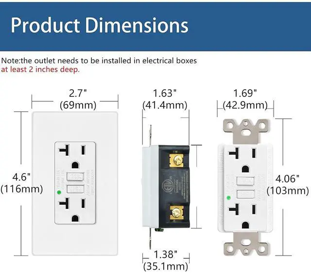 User-friendly DesignQuick plug-in wiring is recommended. GFCI outlets are designed for easy installation and use. They can be easily installed in existing outlets with little to no wiring changes and typically feature a test and reset button for easy operation. The depth of the electrical box be at least 2 inches.
