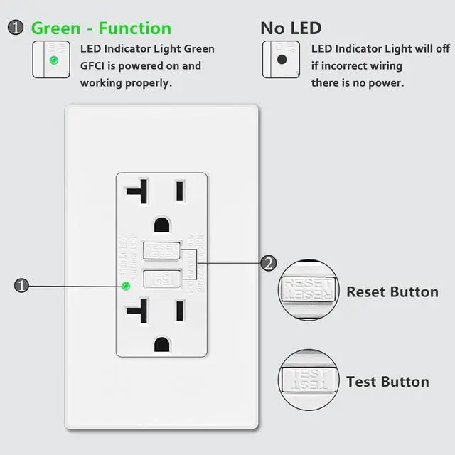 Gfci Electrical Outlet 20A, Prevent Electrical HazardsGFCI outlets can prevent electrical hazards, such as electric shock and fire, by quickly shutting off power, when it detects a ground fault, reducing the risk of injury or damage.