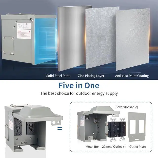 Sturdy and DurableNEMA 3R all-metal enclosure is made of high-grade galvanized steel, which is waterproof, dustproof and rustproof, and can be used normally even outdoors in extreme environments.