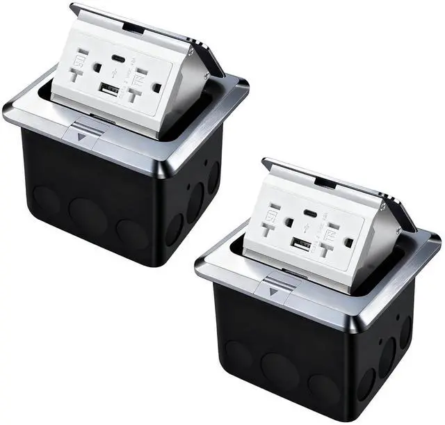 Flexible Charging: Floor outlet kit with two 20A tamper resistant Receptacles and USB Ports, which provide high power 5-Volt, 4.8 -Amp USB-A and USB-C quick charging