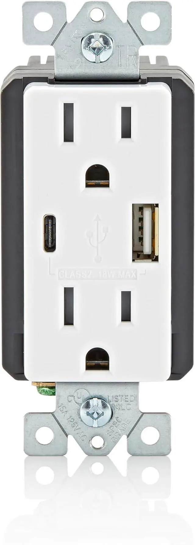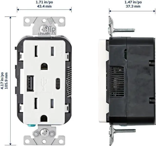 SMART Built-in smart chip recognizes the individual devices charging requirements to optimize the charge (Does not provide Power Delivery. See Leviton T5634, T5635, T5636)