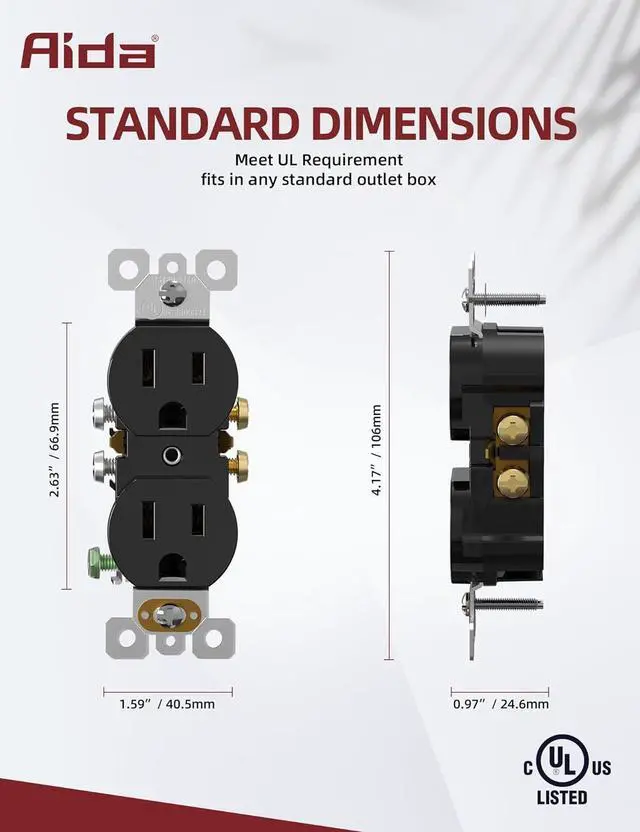 Perfect Anywhere From the bedroom to the library, these UL listed AIDA outlets is perfect for any application in anywhere! Ideal for frequently-used areas like homes, offices, and shops.