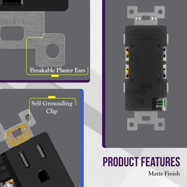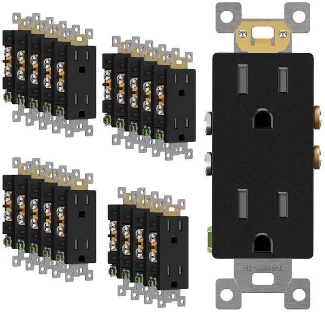 - Matte black color; Tamper-resistant (TR) receptacles prevent unwanted objects from being inserted. 15A 125VAC, 5-15R; flammability UL94, V2 Rating; UL Listed; 1-year warranty; wall plate sold separately; 20 Pack