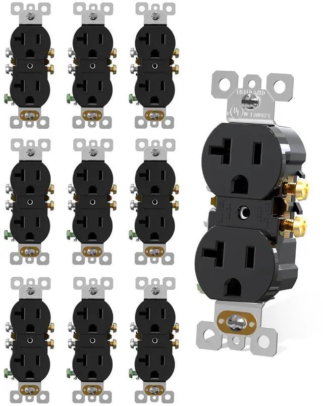 AIDA 20 Amps Outlets Duplex Electrical Receptacle Outlets, Electrical Outlet, 20Amp 125V Heavy-Duty Wall Outlet, Residential, 3-Wire, Self-Grounding, UL Listed, Side Wire (10 Pack, Black)