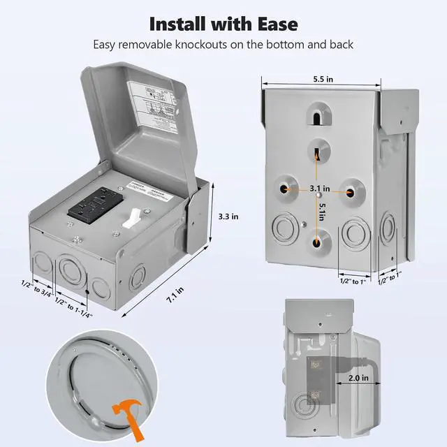 Secure and Lockable: Enhance security by locking the box, offering security whether it' s installed at home, a campsite, or a public charging station. Listed to ETL standards for safety and reliability, our 20 AMP GFCI outlet box guarantees a trusted power source
