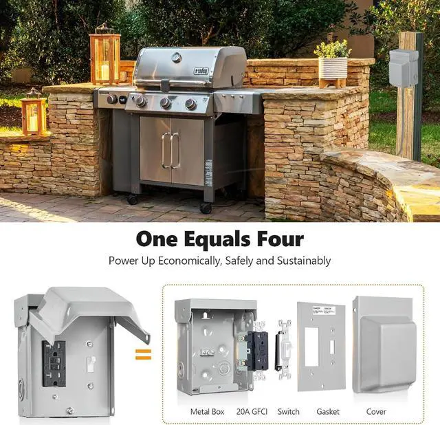 Budget-Friendly Outdoor Power Solutions: One Equals Four - Includes Rugged All Steel Box, 20 AMP GFCI Receptacle, Gasket, and Metal Cover for comprehensive outdoor electrical needs. This electrical box with plug and cover provides a robust combination of economical, power, safety, and convenience
