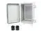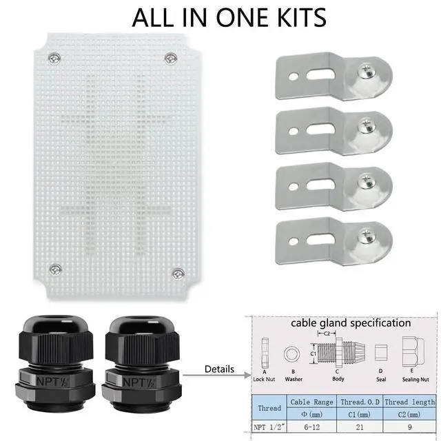 Money Saving Junction Box Sets The junction box includes a mounting plate, 4 stainless steel Wall Brackets, and 2 cable glands. The ABS project boxes can be drilled and shaped easily without cracking, so its almost suitable for your all DIY projects.