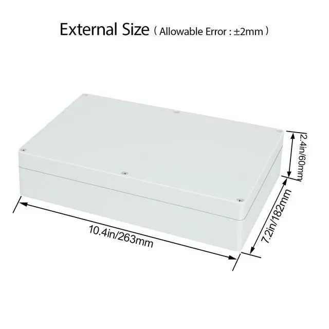 Product SizeExternal Size of the project box: 10.4 x 7.2 x 2.4 inch (263 x 182 x 60 mm);