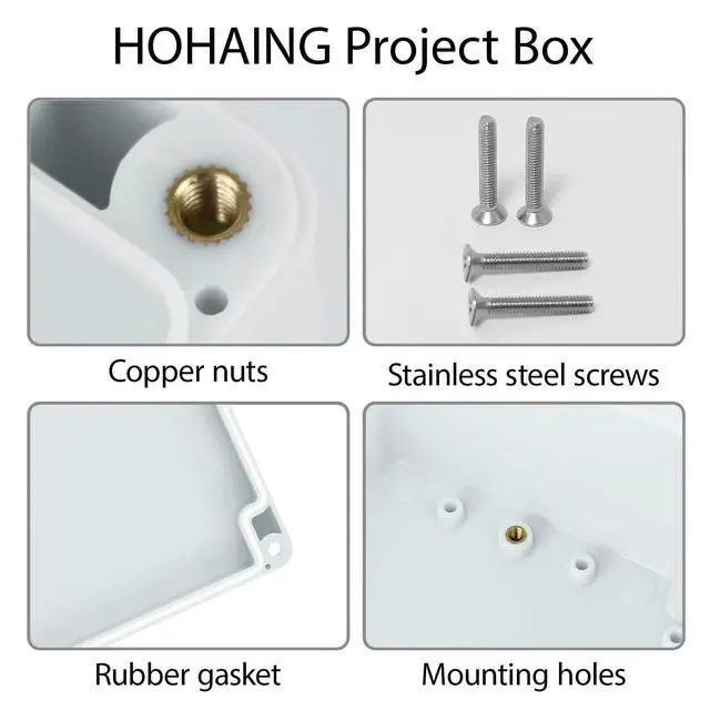 Waterproof grade: IP65HoHaing outdoor project box is weatherproof, moisture-proof, sunscreen, anti-corrosion, suitable for various indoor and outdoor electronic projects.