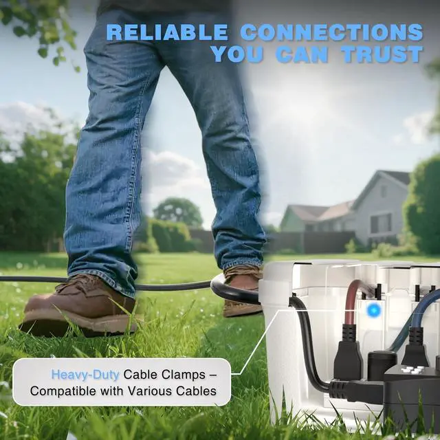 Made with heavy-duty reinforced PP material to withstand rain, snow, water, dust, dirt and more, continuously protecting outdoor connections from electrical hazard.