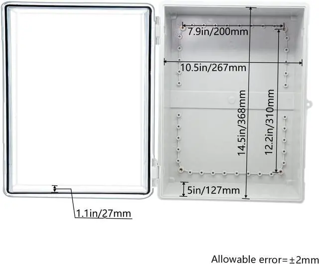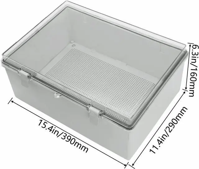 Product SizeOuter Size of enclosure box (Approx. ): 15.4 " x 11.4 " x 6.3 " (390mmx290mmx160mm) (L*W*H); Inner Size(Approx. ): 14.7 " x 10.3 " x 5.9 " (374 x 262 x 151) (L*W*H) - - (Allowable